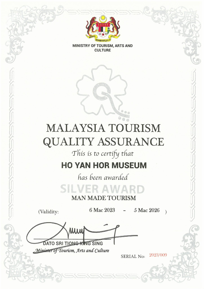 6 Jun 2023 - Muzium Ho Yan Hor (HYHM) dengan sukacitanya mengumumkan pencapaian terkini menerima pengiktirafan PERAK dalam Program Jaminan Kualiti Pelancongan Malaysia (MyTQA). Pencapaian ini lebih mengukuhkan komitmen muzium untuk menyampaikan pengalaman yang luar biasa kepada pengunjungnya.